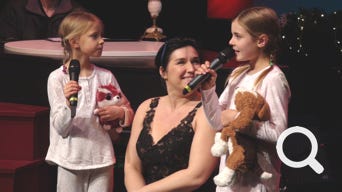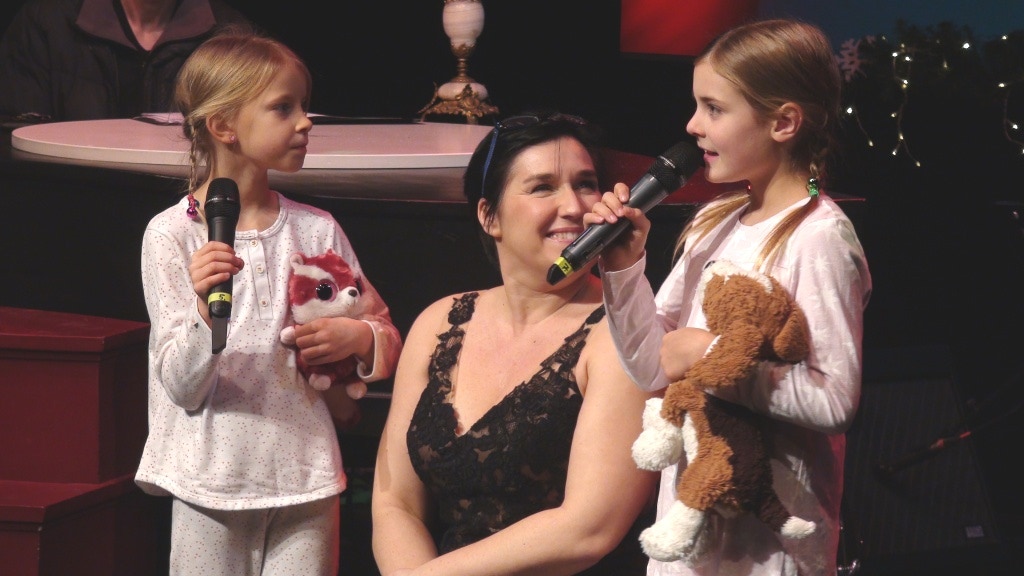 Sandra Keck wirbelt über die Bühne, singt mit den Kindern, moderiert charmant ihre Gäste an.