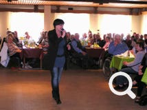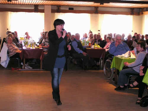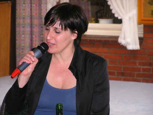 In der Pause plauderte Frau Keck ungezwungen mit den Besuchern, verteilte Autogrammkarten und signierte ihre Bücher, die Frau Scheller vom Quickborn-Verlag am Büchertisch verkaufte. In der zweiten Hälfte ging es dann zunächst in kleinen gemeinen "Szenen einer Ehe" um die Zeit, wenn die "Leev" sich schon etwas verflüchtigt hat. Außerdem bot sie mitreißende Gesangseinlagen wie zum Beispiel Schneewittchens Lied aus "Rock auf platt 3" zur Melodie des Hits "I will survive". Da hielt es die Gäste kaum auf ihren Plätzen! Mit dem bekannten Lied "Dat du min Leevsten büst" beendete Sandra Keck ihren unterhaltsamen Auftritt, und nachdem sich ihre Zuhörer die Lachtränen aus den Augen gewischt hatten, sangen fast alle mit.