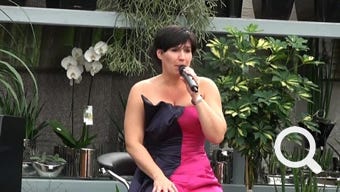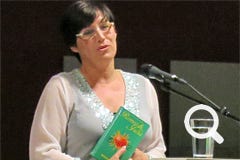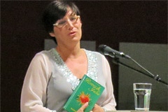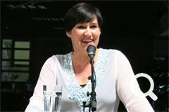 Die vielseitige Schauspielerin und Regisseurin wurde gerade mit dem Rolf-Mares-Preis als "herausragende Schauspielerin" ausgezeichnet. Zu Recht wie sie auch an diesem Abend bewies! Außerdem schreibt sie, da sie "Spaß am Spiel mit Worten hat" (Zitat). Ach ja und singen kann sie auch und zwar richtig gut, davon konnten sich die Zuhörer an diesem Abend selbst überzeugen.
